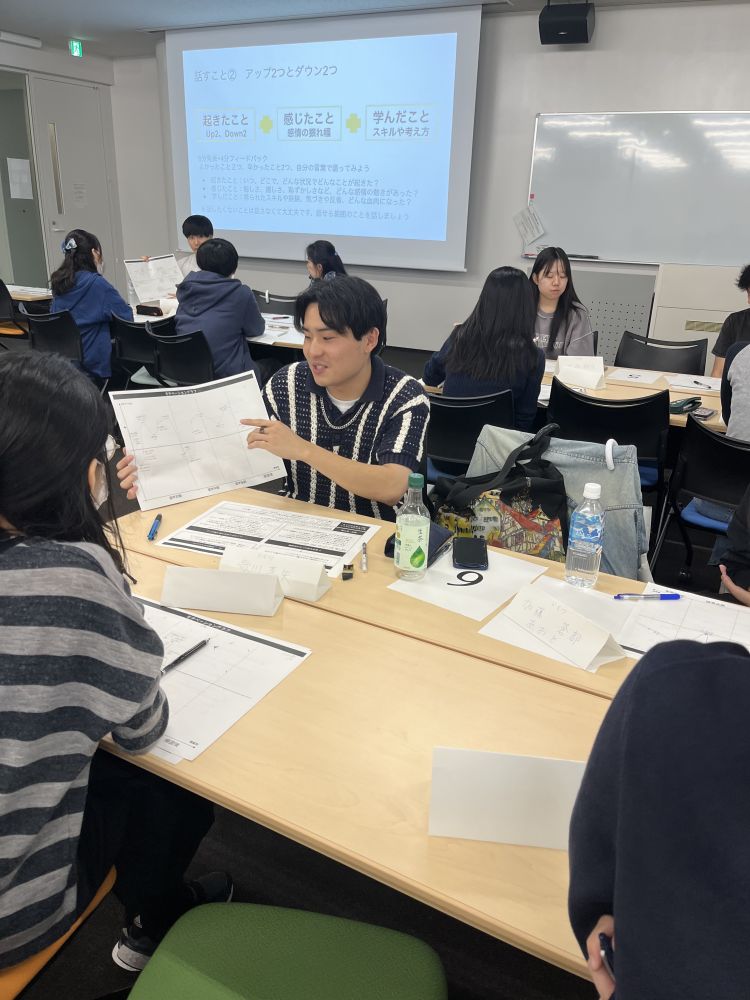 前半はランダムに3~4人ずつグループ分けし、留学のポジティブな経験とネガティブな経験両方をグループ内でシェアしました。制限時間を過ぎるほど話が止まらずとても盛り上がりました。