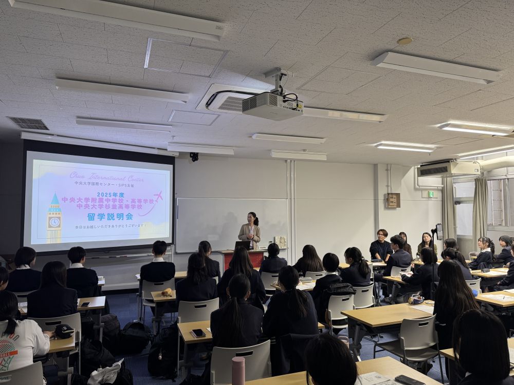 11月11日(火)に、本学の長期留学経験者から構成される学内留学応援団「SIPS(シップス)」のメンバーが中央大学杉並高校を訪問し、後輩たちへ留学についてのアドバイスを行いました。