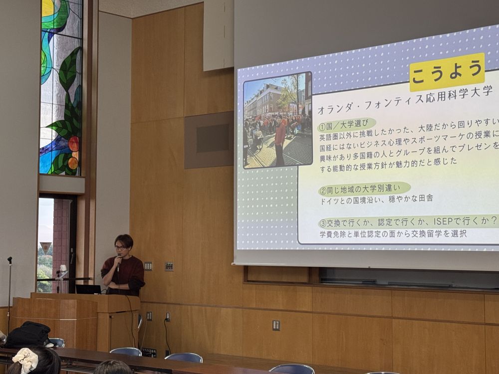 SIPSの説明の中ではオランダ・フォンティス応用科学大学へ留学をしたメンバーの経験をもとに、現地で困ったことから就活の話まで、幅広くお話いただきました。