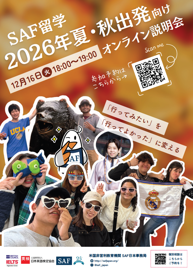 1.2026年夏/秋出発向け SAF留学説明会(12/16)