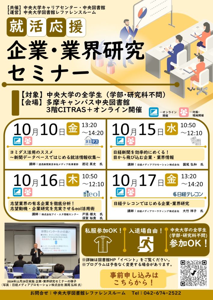 - 就職活動に向けた企業・業界研究を応援するセミナーを開催します!