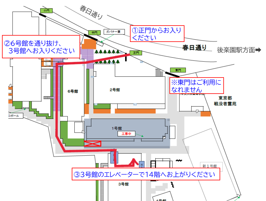 現在、キャンパス内工事中の為、会場までのルートをご確認いただきますようお願いいたします。