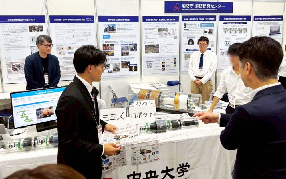 理工学部精密機械工学科バイオメカトロニクス研究室の教授 中村 太郎は、(株)東京ビッグサイトが主催する国内最大級の危機管理総合トレードショー「危機管理産業展 (RISCON TOKYO) 2025」(2025年10月1日(水)~3日(金))に出展した総務省消防庁ブース内で、研究開発中のミミズ型ダクト内油塵清掃・点検ロボットを展示しました。同イベントには、3日間・延べ19,622 名が来場登録し、東京消防庁 市川 博三 消防総監も訪れ、視察されました。出展概要は、こちらをご覧ください。