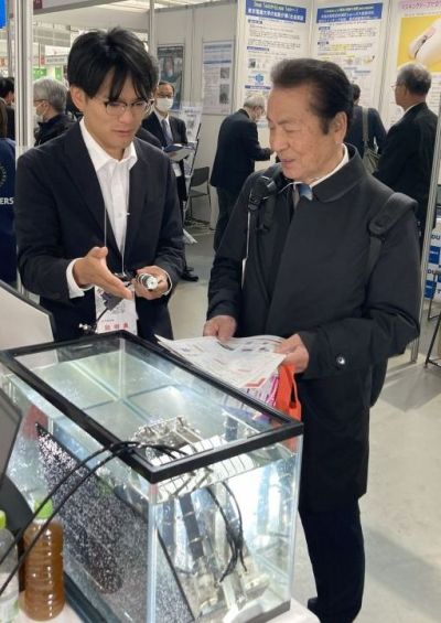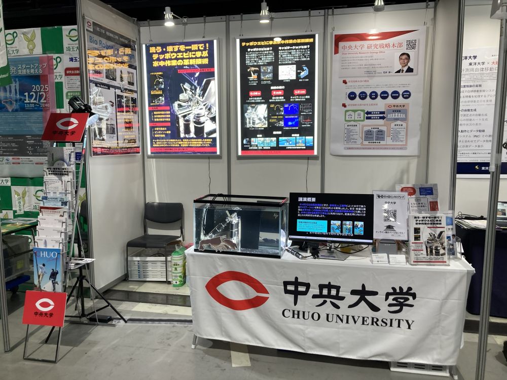 また、同研究室助教 伊藤 文臣は「令和7年度 彩の国ビジネスアリーナ」(2025年11月18日(火)~19日(水))で、テッポウエビの高速運動に学び、空気圧人工筋肉によって水中で強力なキャビテーションを発生させるロボットを展示しました。同イベントには、埼玉県内外から2日間・延べ10,674名が来場し、中央大学ブースに来訪した方々に展示品や研究の取り組みについて説明しました。出展概要は、こちらをご覧ください。