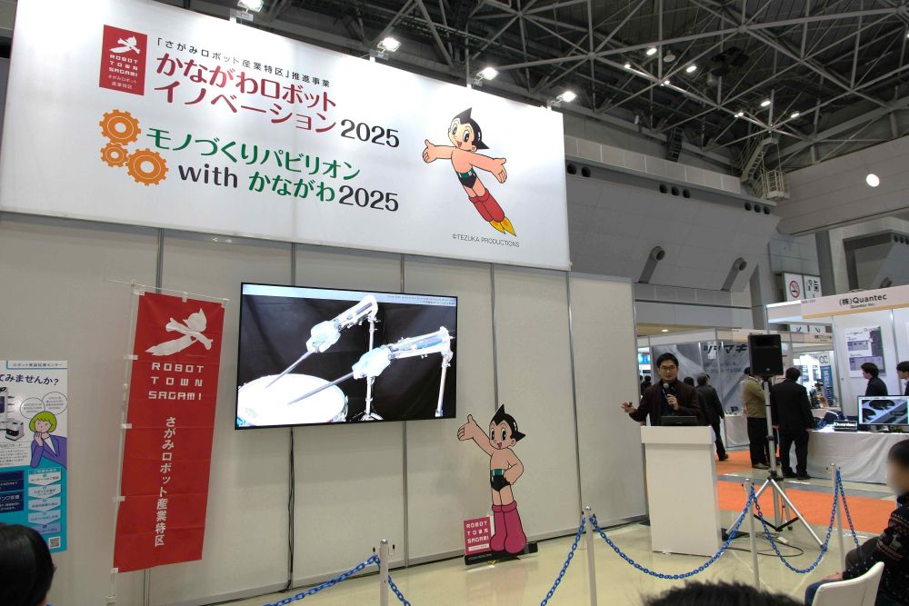 理工学部精密機械工学科駆動デザイン研究室の准教授 奥井 学は、一般社団法人日本ロボット工業会と日刊工業新聞社が主催する世界最大級のロボット展「2025国際ロボット展」(2025年12月3日(水)~6日(土))に出展した神奈川県「かながわロボットイノベーション2025」ブース内で、研究開発中の人工筋肉駆動ドラム演奏ロボットおよび燃焼人工筋肉を展示しました。また、4日(木) 13:50-14:00と6日(土)15:00-15:10には、同会場・西4ホールのかながわプレゼンステージにて、「ソフトアクチュエータが拓く柔らかく力強い未来のロボティクス」をテーマに、セミナーを行いました。