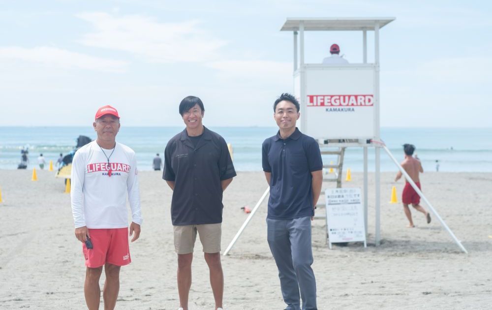 実際に由比ガ浜におもむき、海辺のみまもりシステムの仕組みや導入の経緯、AIによって海の安全はどう変わるのか、石川機構教授と鎌倉市観光課の大野博輝氏、鎌倉ライフガード代表の菊地一郎氏にお話を伺いました。
