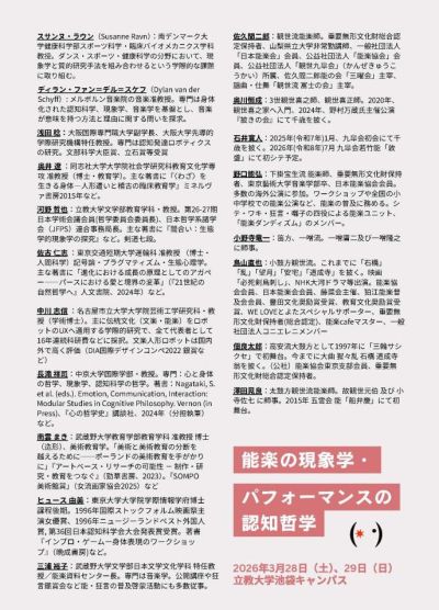 本シンポジウムでは、芸術研究と認知科学・哲学を横断し、人間の身体表現の基盤を再考する試みであり、今後の学術的発展が期待されます。