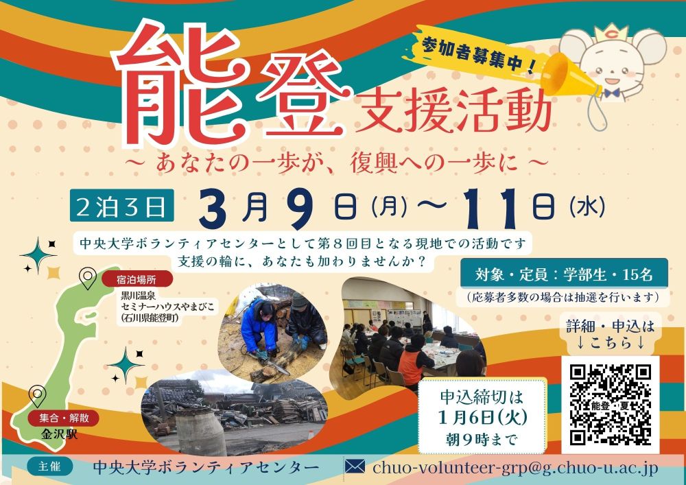 今般、春休みに能登半島でのボランティア活動を実施します。