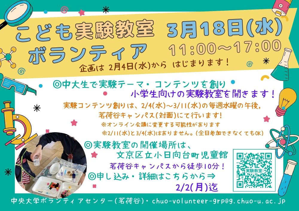 実験コンテンツを創り、茗荷谷キャンパス近隣の小学生へ実験教室を開く活動日と場所