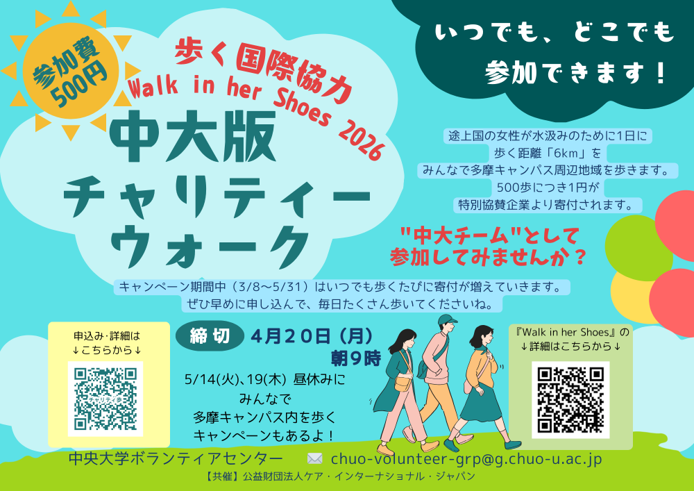 歩く国際協力キャンペーン「Walk in Her Shoes2026」企画に中大チームの一員として参加しませんか?